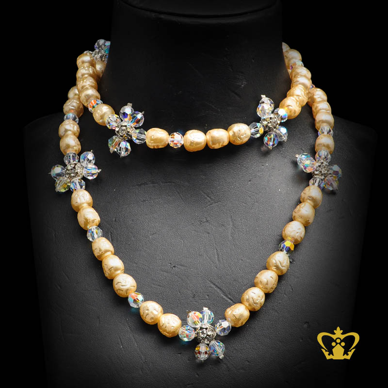 Stylish necklace embellished with crystal stone and pearl