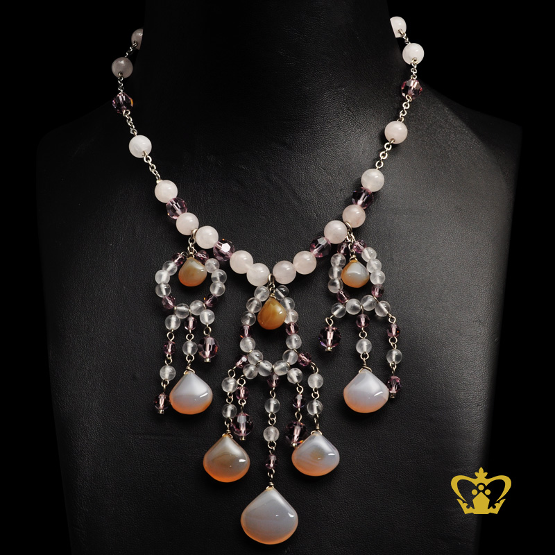 Stylish necklace embellished with crystal stone and pearl