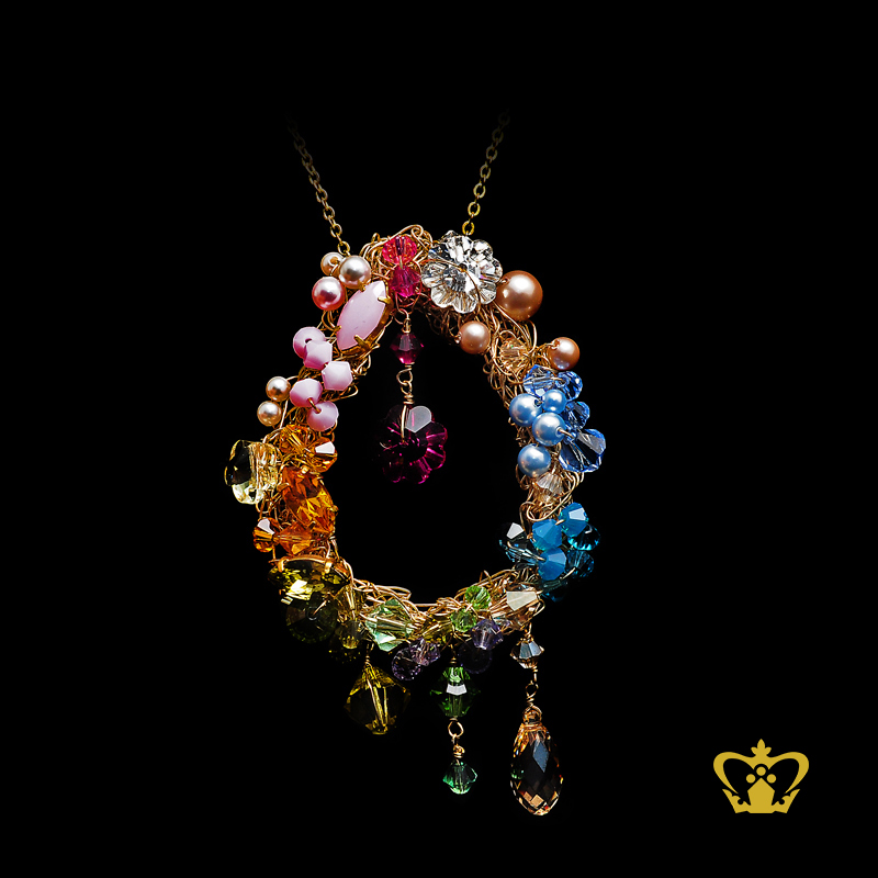 Round multicolor pendant embellished with sparkling crystal stone and pearl