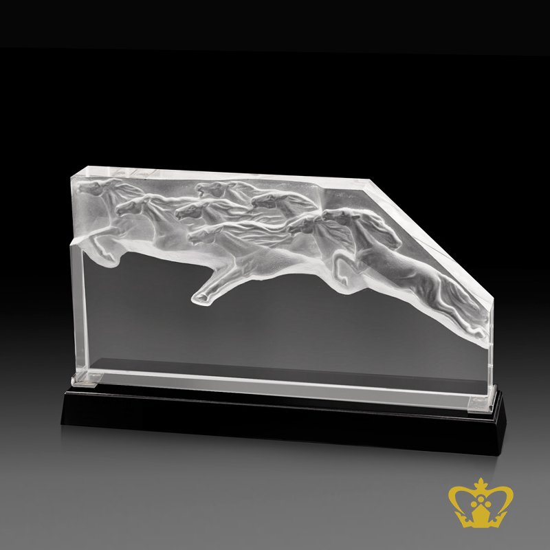 Personalize crystal horse riding trophy with black base customized text engraving logo