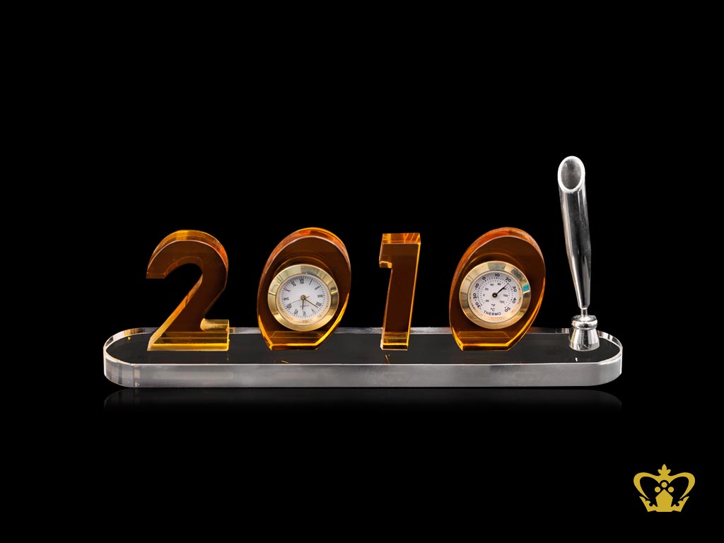 Personalized-Crystal-Pen-Holder-With-Year-and-Clock-For-Desk-Desktop-Customized-With-Your-Name-Designation-Logo Product Product Product