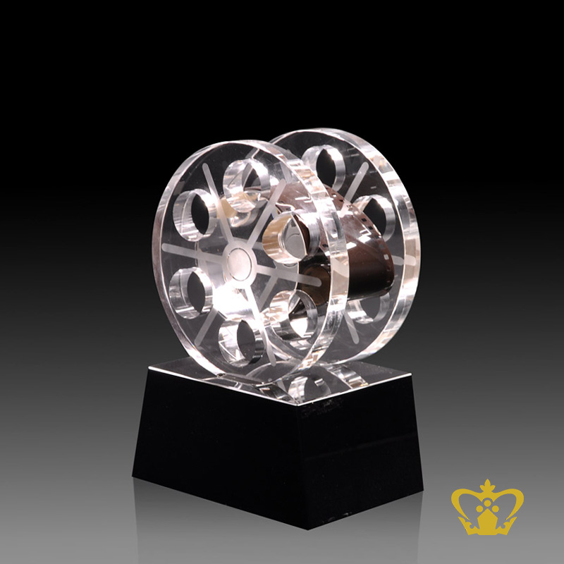 Crystal-film-reel-trophy-stands-on-black-crystal-base-customize-text-engraving Product Product Product Product