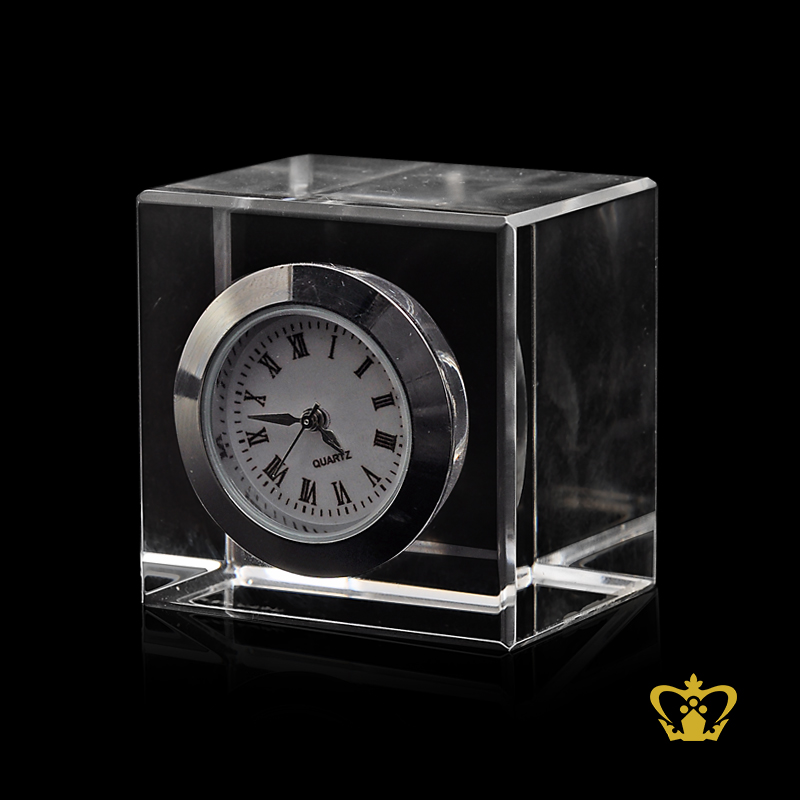 Handcrafted crystal cube with clock customized logo text