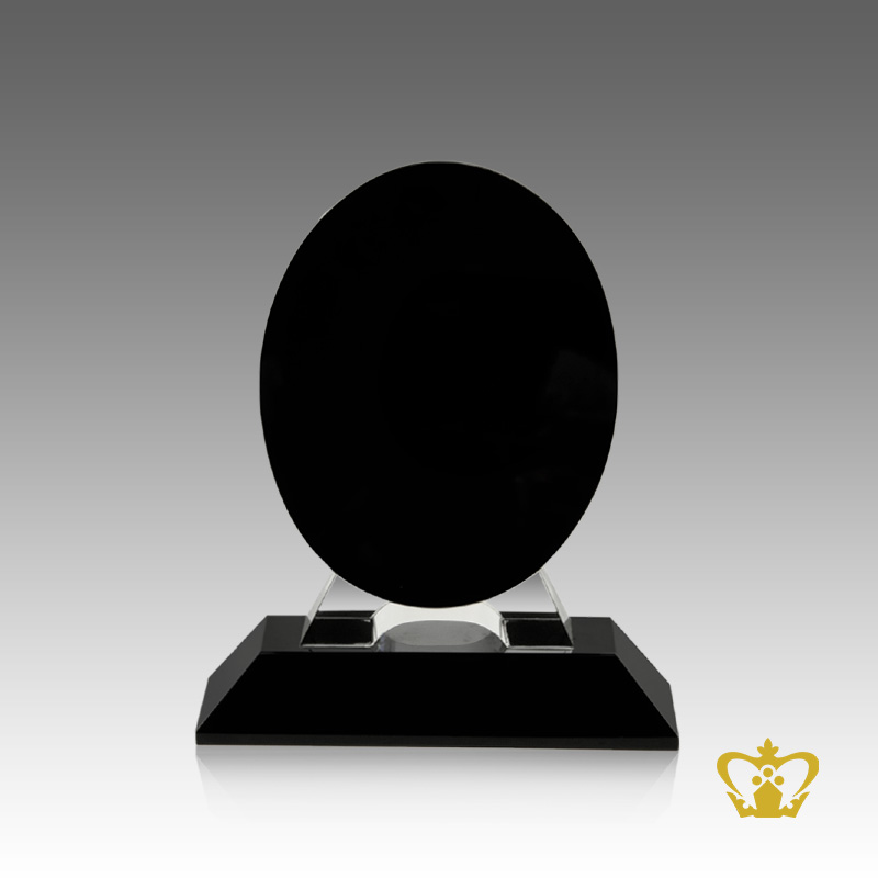 Handcrafted Optic Black Crystal Trophy in Oval Shape stands on Base Custom Text Engraving Logo Base UAE Famous Souvenirs