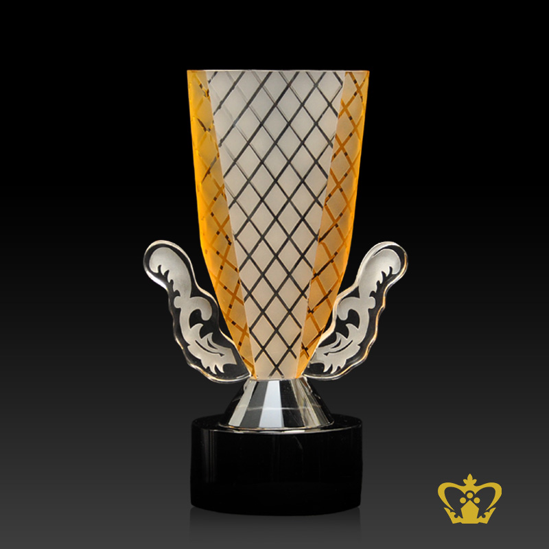 Winner-cup-trophy-amber-crystal-with-black-base-customized-logo-text Product Product Product Product