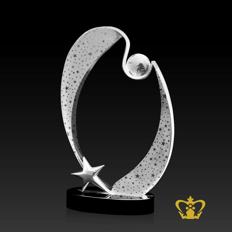 Celestial-crystal-trophy-with-globe-star-and-black-base-an-oval-plaque-with-frosted-star-pattern-signifies-growth-and-accomplishing-goals Product Product