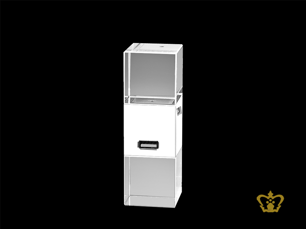 Here's where technology marries ingenuity under the apse of crystal. Serving a dual-purpose, it bears 4 USB ports & features 2 shapely cubes. Personalized engraved business card holders and business card cases make great gifts for business people, check out our wide range of business card holders custom branded, business card holders engraved, business card holder engraved gift and business card holders monogrammed. Showcase your business cards by choosing one of our desk business card holders. Define your own unique image with one of our outstanding personalized desk business card holders. We offer a premium selection of business card holders for the desk ranging from classic to contemporary designs. Make a defining presence for yourself or your business with one of our sophisticated choices in unique desktop business card cases. Steer your office image to the top percentile with a Personalized Desk Business card holder from crystalgallery.com. We will engrave your name, initials or corporate logo in quality laser engraving or color engraving to create a lasting impression for your desk. This personalized crystal business card holder stands for true professionalism. It is a corporate gift that practically ensures more business. There are not many things you can give a professional to show them how much you care about them and their business, but this is definitely one of those perfect gifts that will work well to say both. Click on 'customize' button and upload your image or logo and text, and get your business card holder customized artwork, we will make sure the designs fit your needs before you pay anything. Order yours online today by click on customize button and upload your logo or image and text, you can also click on enquiry button we will respond as soon as we can.