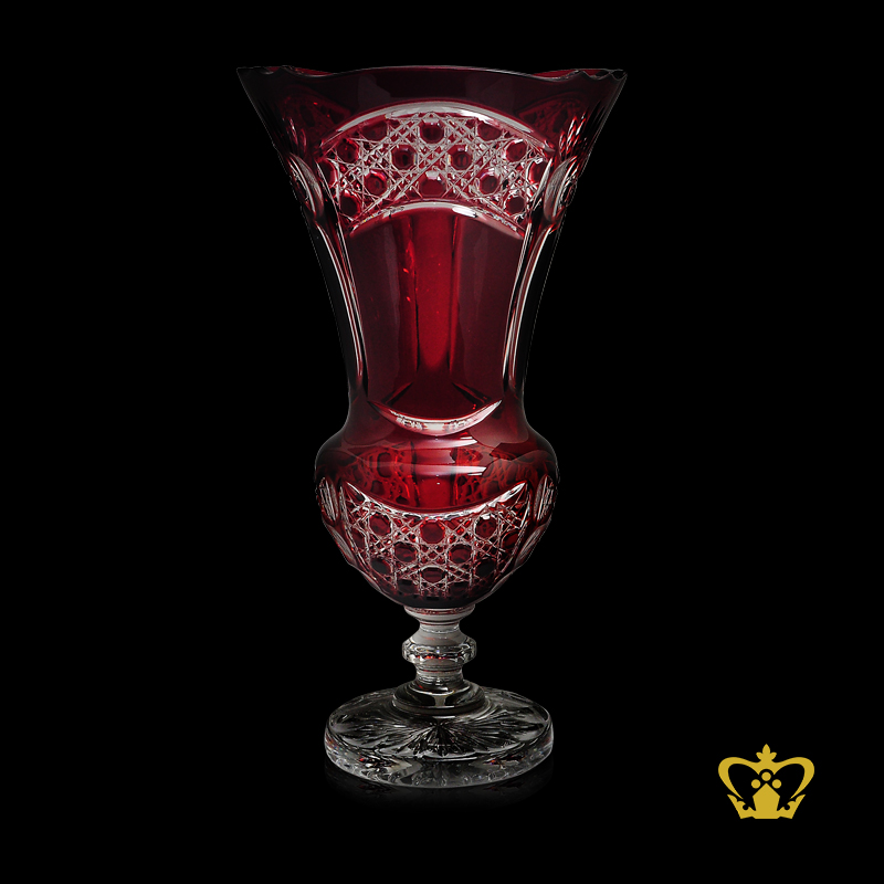 Gorgeous-long-footed-red-crystal-vase-with-intense-traditional-diamond-pattern-hand-crafted Product Product Product