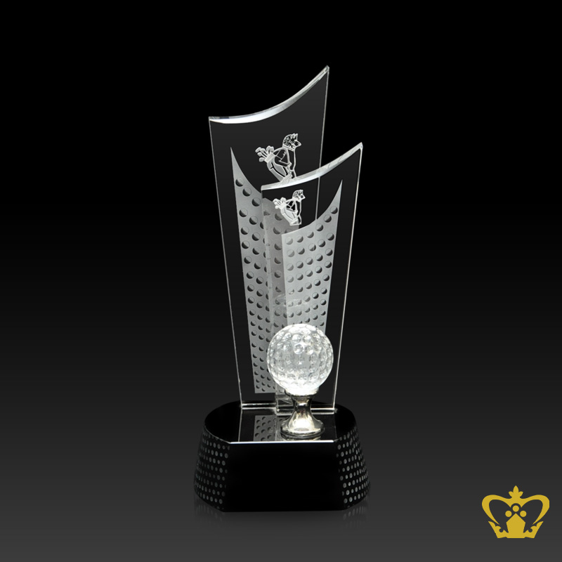 Personalized-Crystal-Twin-Golf-Trophy-Stands-On-Black-Crystal-Base-Customized-Text-Engraving-Logo Product Product Product