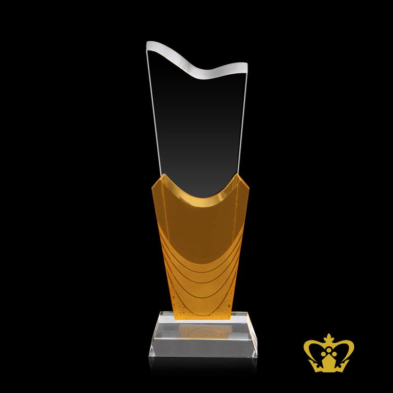 Handcrafted Crystal Yellow Twin Trophy With Clear Base Customized Logo Text