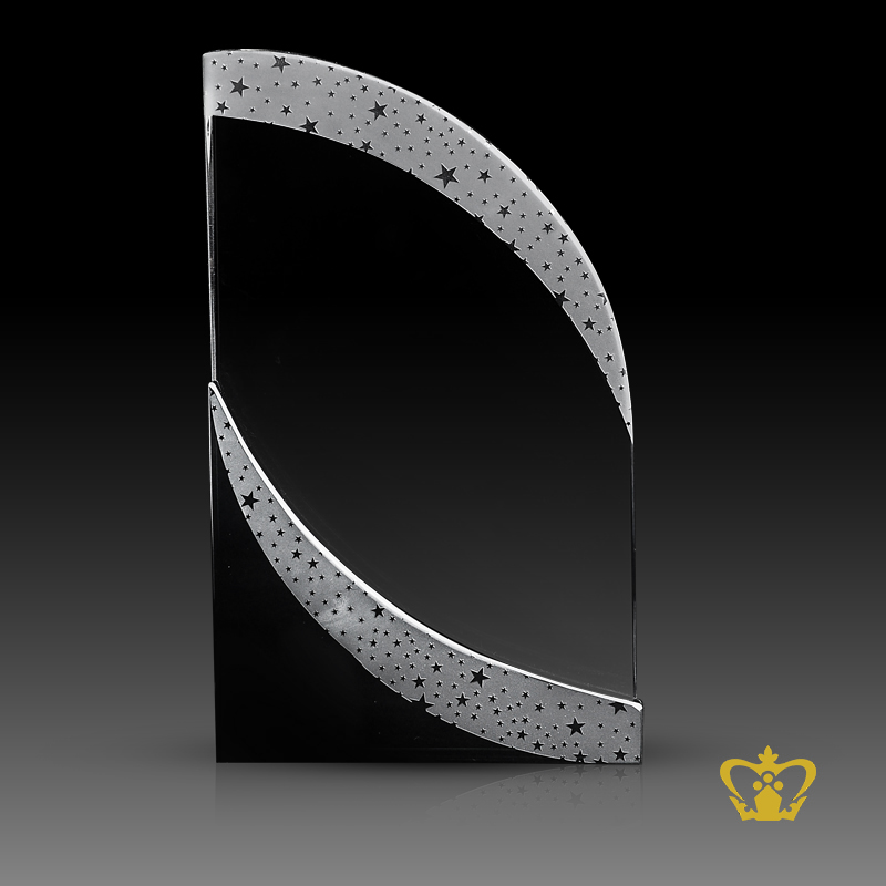 Personalized crystal trophy with the sail shape engraved with star customized text engraving logo
