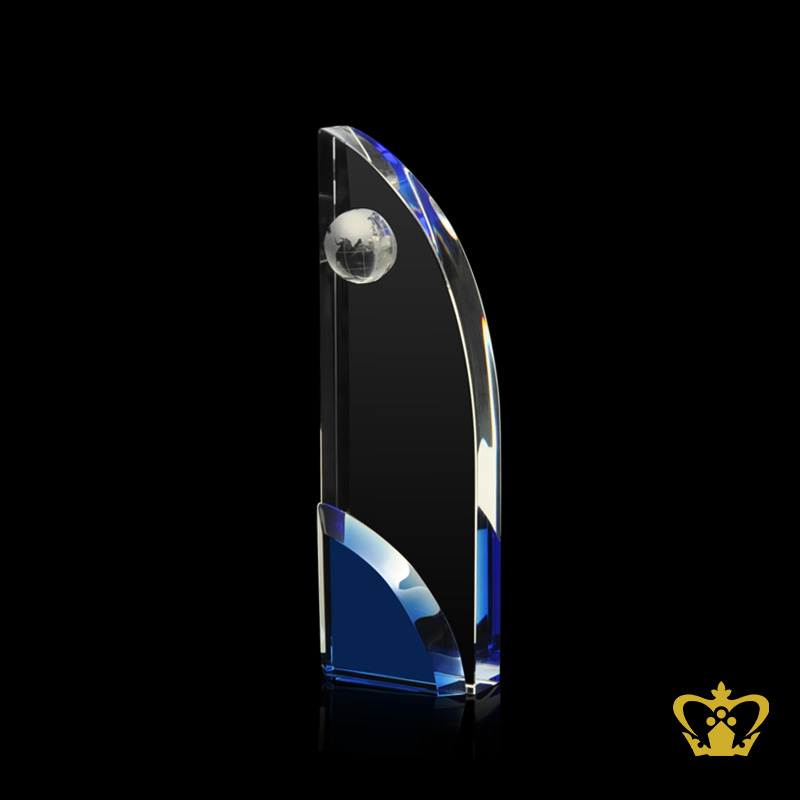 Handcrafted-Crystal-Blue-Sail-Trophy-with-Globe-Customized-Logo-Text Product Product Product
