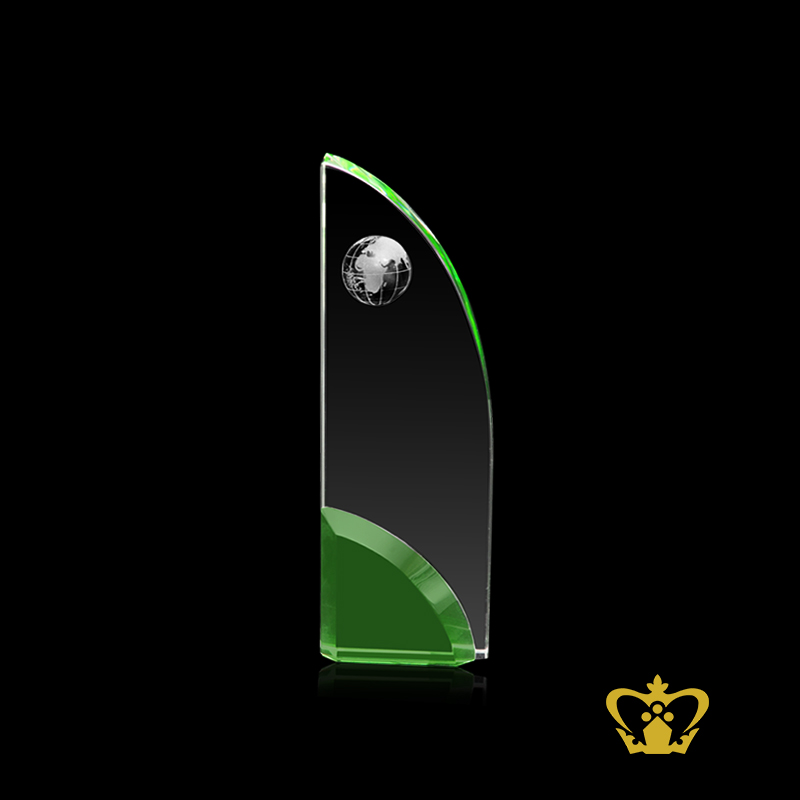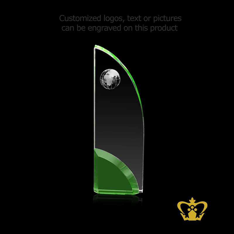 Handcrafted Crystal Green Sail Trophy with Globe Customized Logo Text
