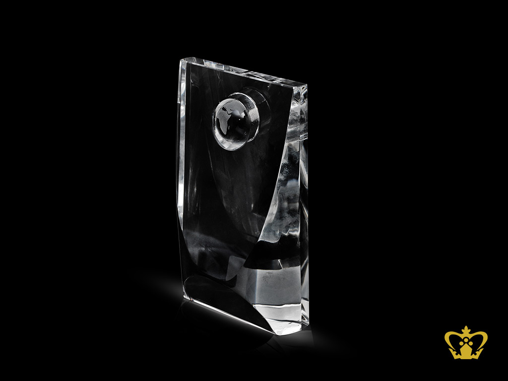 Handcrafted-Crystal-Kingdom-Tower-with-Globe-Trophy-Customized-Logo-Text Product