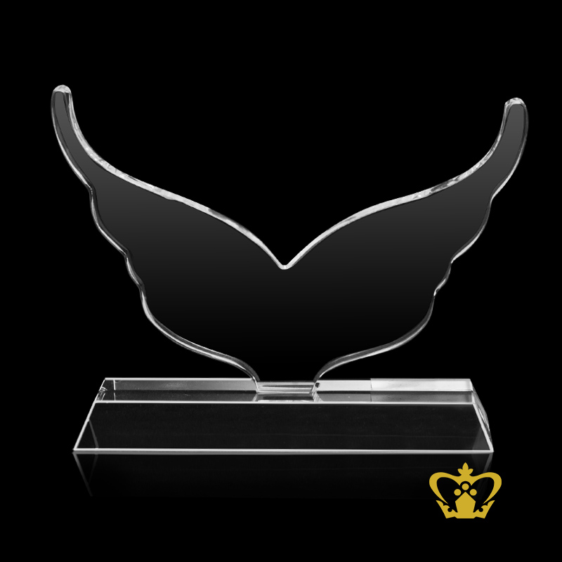 Personalized Crystal Cutout of Flying Eagle stands on Clear Base Customized Text Engraving Logo