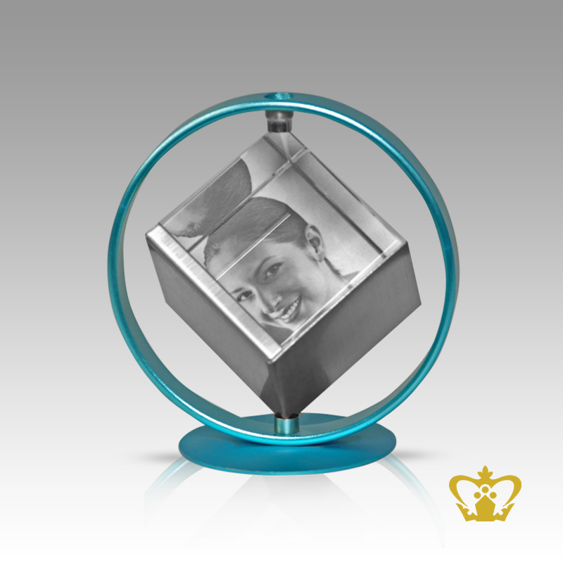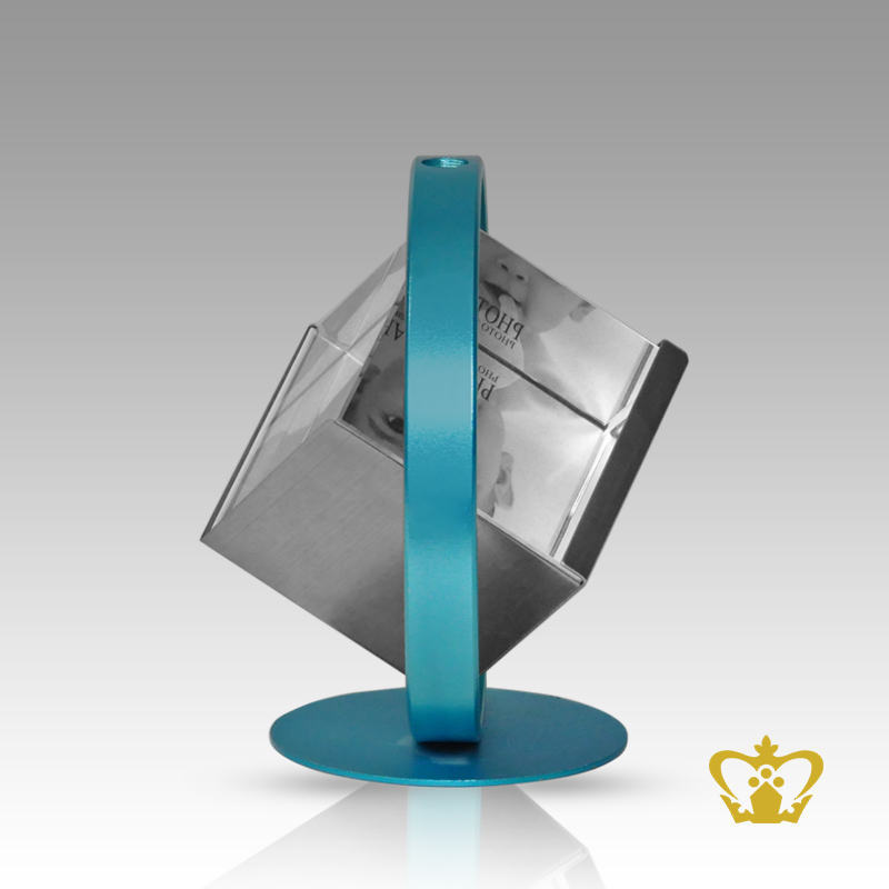 Personalized-crystal-rotating-cube-with-blue-frame-and-for-desktop-customized-with-your-name-designation-logo Product Product Product Product