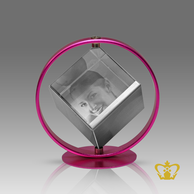 Personalized-crystal-rotating-cube-with-pink-frame-and-for-desktop-customized-with-your-name-designation-Logo Product Product Product Product