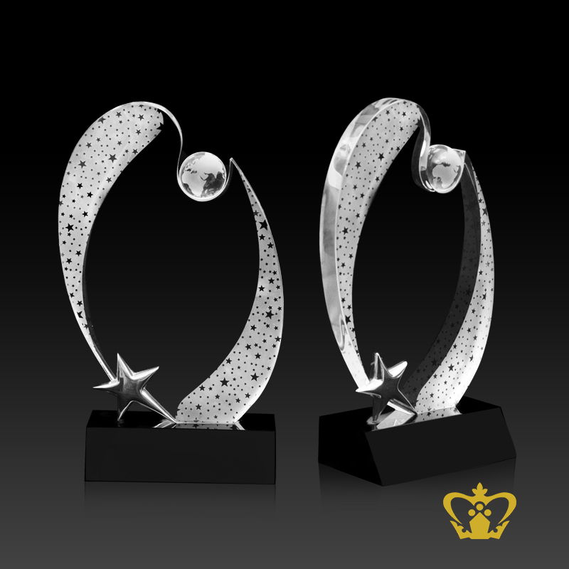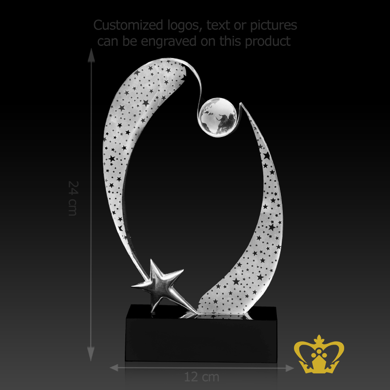Celestial-crystal-trophy-with-globe-star-and-black-base-an-oval-plaque-with-frosted-star-pattern-signifies-growth-and-accomplishing-goals Product Product Product Product