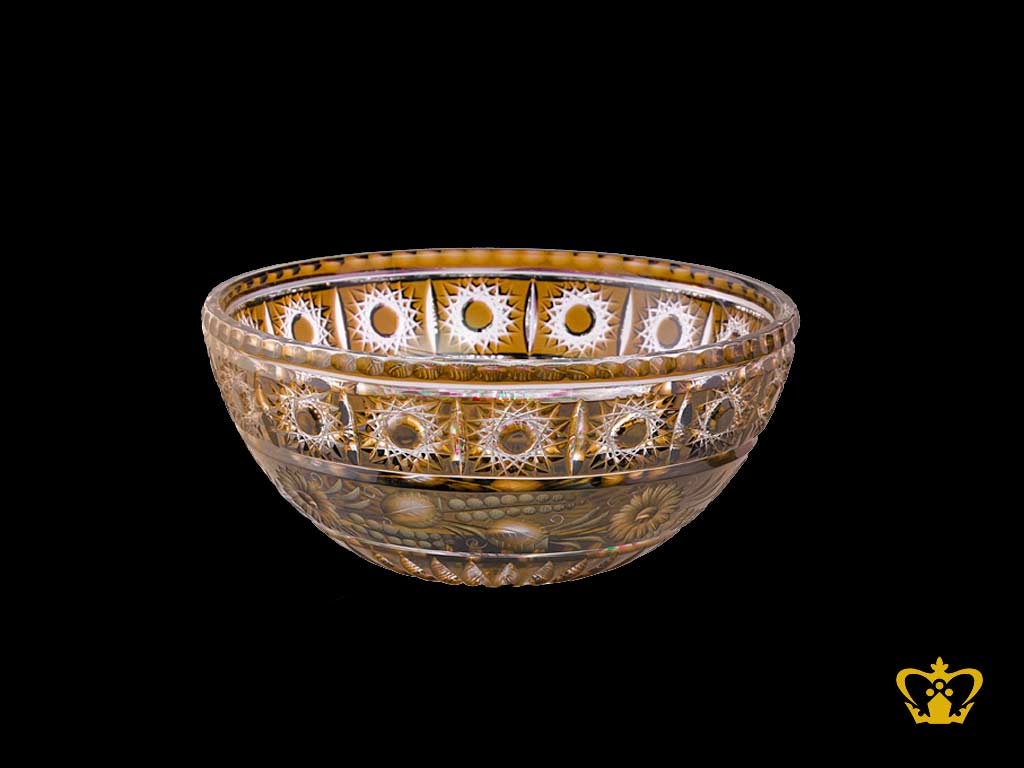 Alluring amber crystal bowl adorned with handcrafted intense star and floral pattern