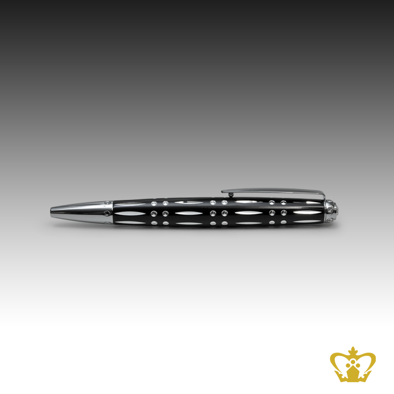 Manufactured Artistic Black Metal Pen with Crystal Stone and Intricate Design