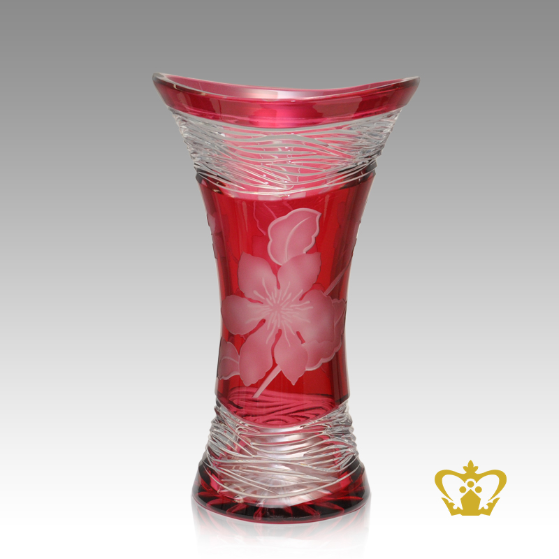 Exotic pink floral rippling crystal vase adorned with precious elegant pattern