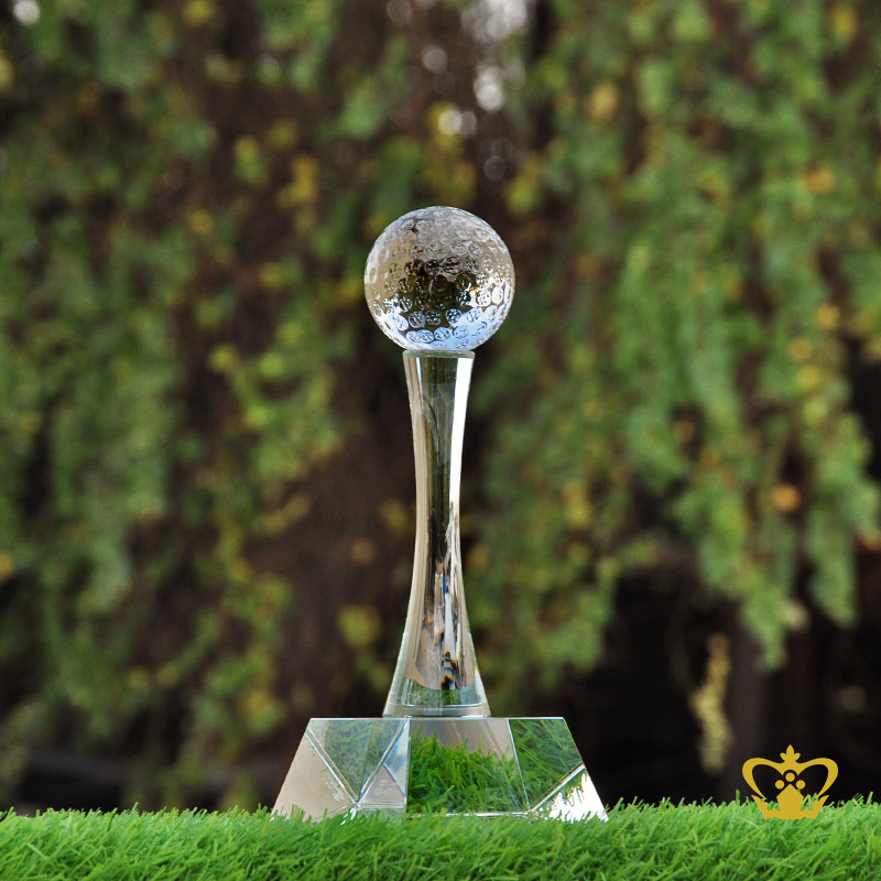 Personalized Crystal Golf Trophy Stands On Clear Crystal Base Customized Text Engraving Logo