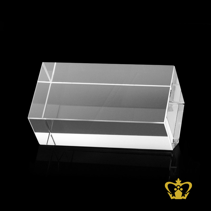 You can personalize this crystal cube or rectangular crystal block by engrave your own photo, logo, text, design or any ideas. Click on customize button and upload your image or text and buy online, you can also click on enquiry button we will respond as soon as we can. To produce a 3D crystal, firstly our designers transform any of your ordinary photographs into amazingly 3D images. Then it imprinted or engraved in glass cube using our precision laser technology in crystal cube. 3D crystal cube or blocks are often used for 3D or 2D crystal portraits and given as gifts for wedding, birthdays, Valentine's Day, mother's day, father's day, graduation, convocation , remembrance, memorial or anniversary gift. There are also great corporate or business gifts for recognition awards, promotional paperweights and event mementos. Corporate logos laser engraved inside of the crystal make elegant client and employee gifts. These laser crystals accommodate 3D layered designs where text and image can be engraved at different depths in the crystal. You can add an optional light base and the interaction of the white LED light with the engraving creates bright and sparkling 3D keepsake.
