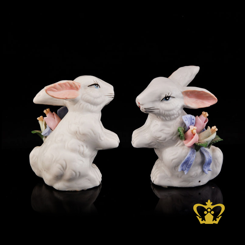 A-Masterpiece-Ceramic-Figurine-of-a-Rabbit-sided-with-Bouquet-of-Flower Product Product