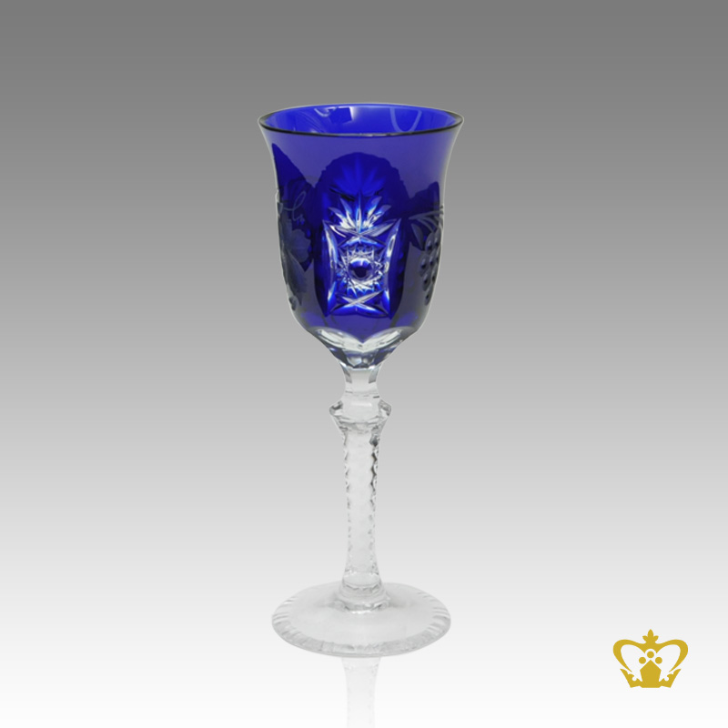 Cobalt blue stylish epoch crystal liqueur glass with handcrafted pattern and elegantly hand carved stem 2 oz