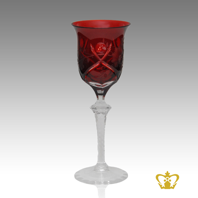 Copper ruby crystal wine goblet with floral pattern hand engraved and elegantly carved stem