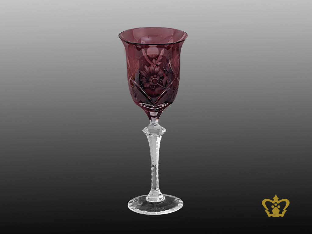 Crystal amethyst wine goblet with floral pattern hand engraved and elegantly carved stem