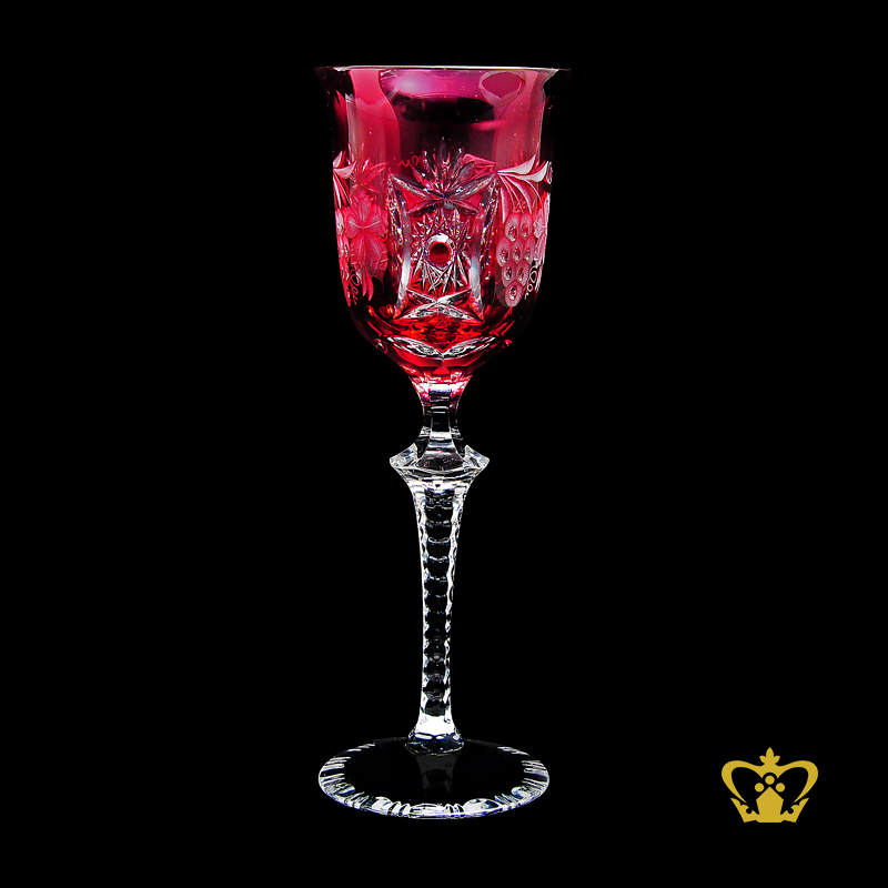 Elegant red wine crystal goblet with intense star cuts and grapevine hand carved stylish clear stem
