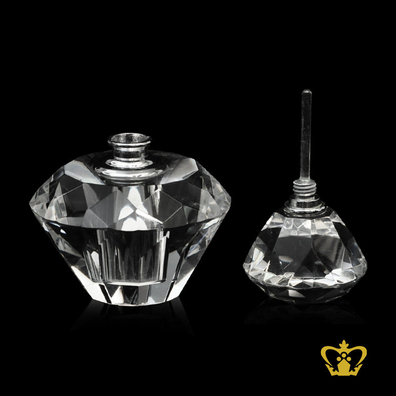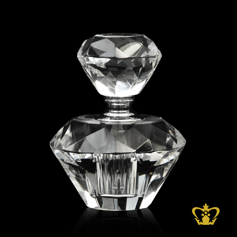 Alluring rare marvelous antique look lucid crystal perfume bottle with handcrafted diamond cuts luxurious gift souvenir for special occasions