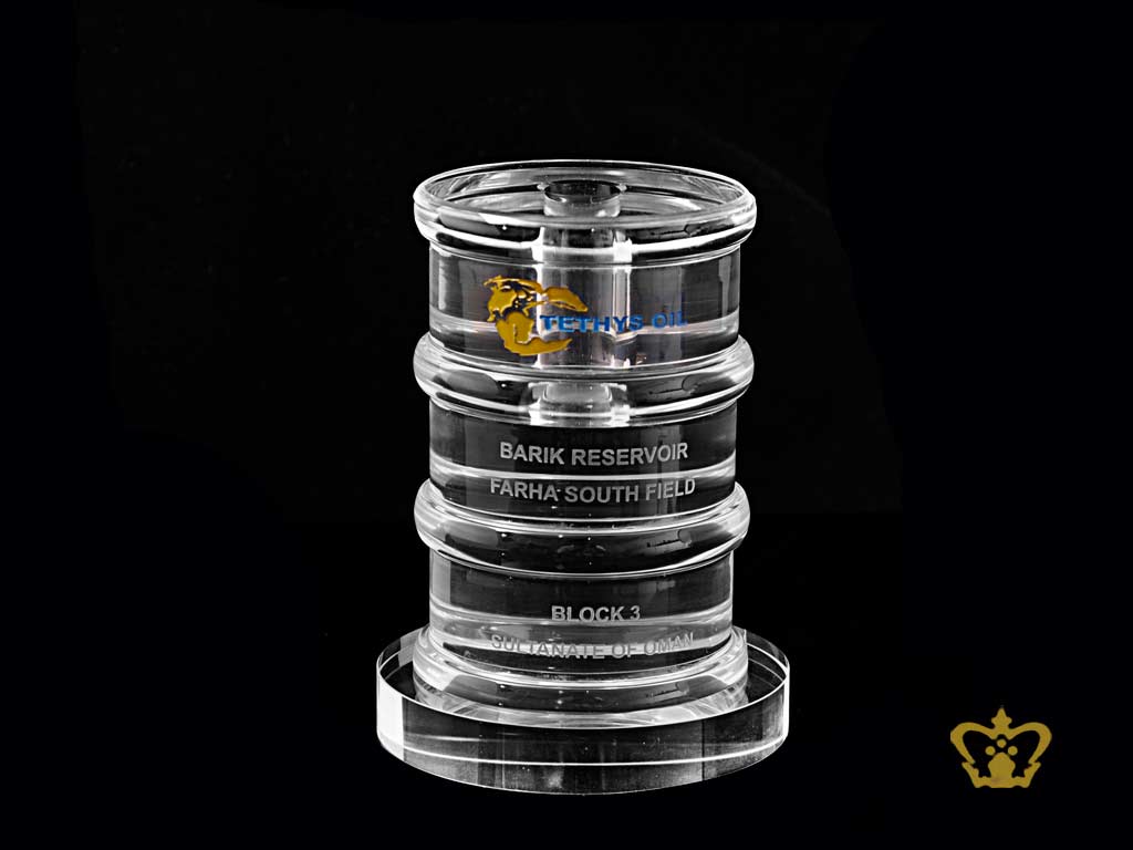 Personalized crystal oil barrel customized text engraving logo base UAE famous gifts