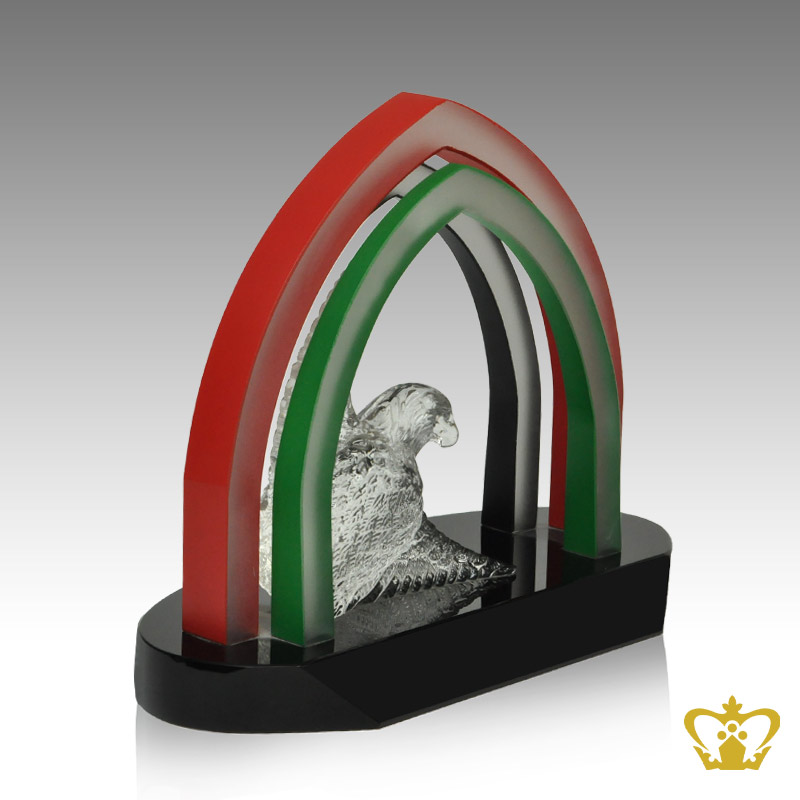 Custom-made-crystal-trophy-theme-mihrab-falcon-with-text-engraving-logo-base-UAE-traditional-souvenirs Product Product Product Product Product