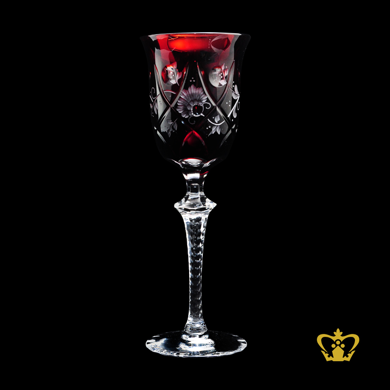 Frosted-floral-elegant-copper-ruby-red-wine-crystal-goblet-with-intense-pattern-hand-carved-stylish-clear-stem Product Product