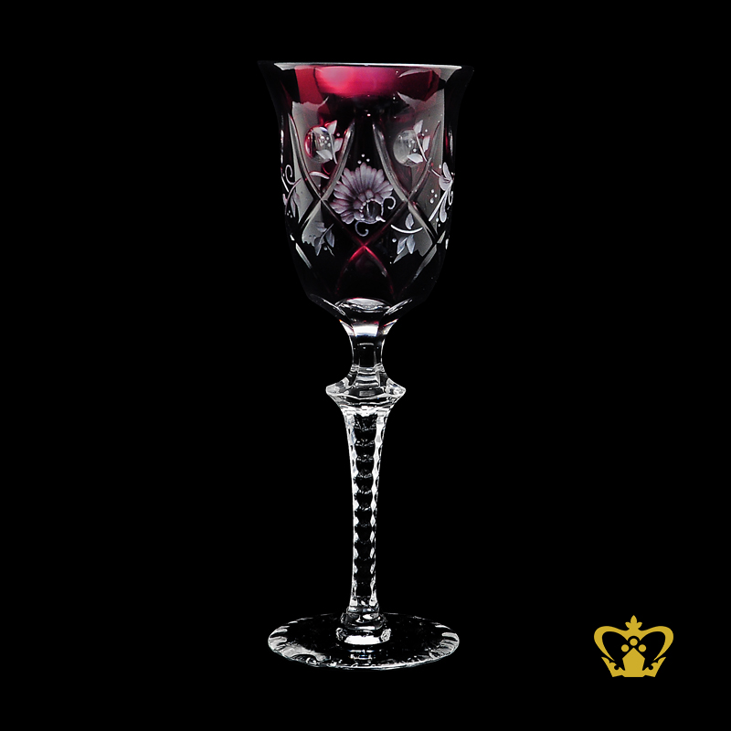 Amethyst crystal wine goblet with floral pattern hand engraved and elegantly carved stem