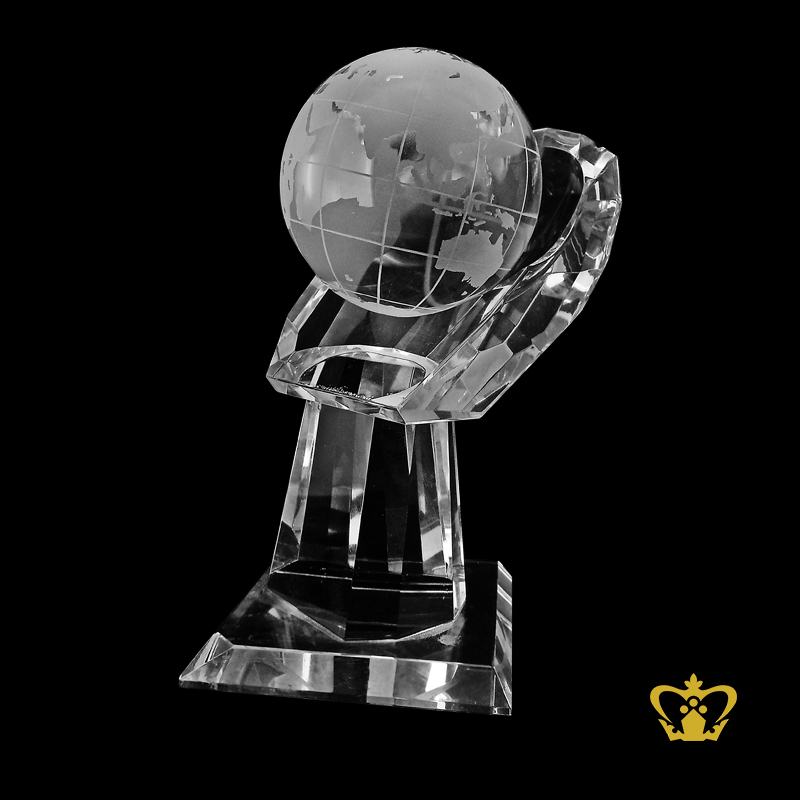 Personalized-crystal-hand-with-globe-for-desktop-customized-with-your-name-designation-logo Product Product Product