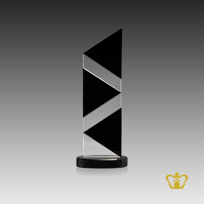 Personalized triangular shape trophy in black crystal round base customize logo text engraving