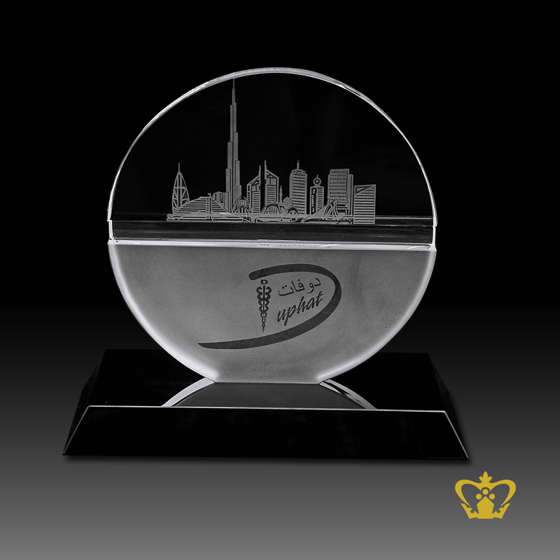 Round-shape-tablet-pharmaceutical-cutout-trophy-with-black-base Product Product Product