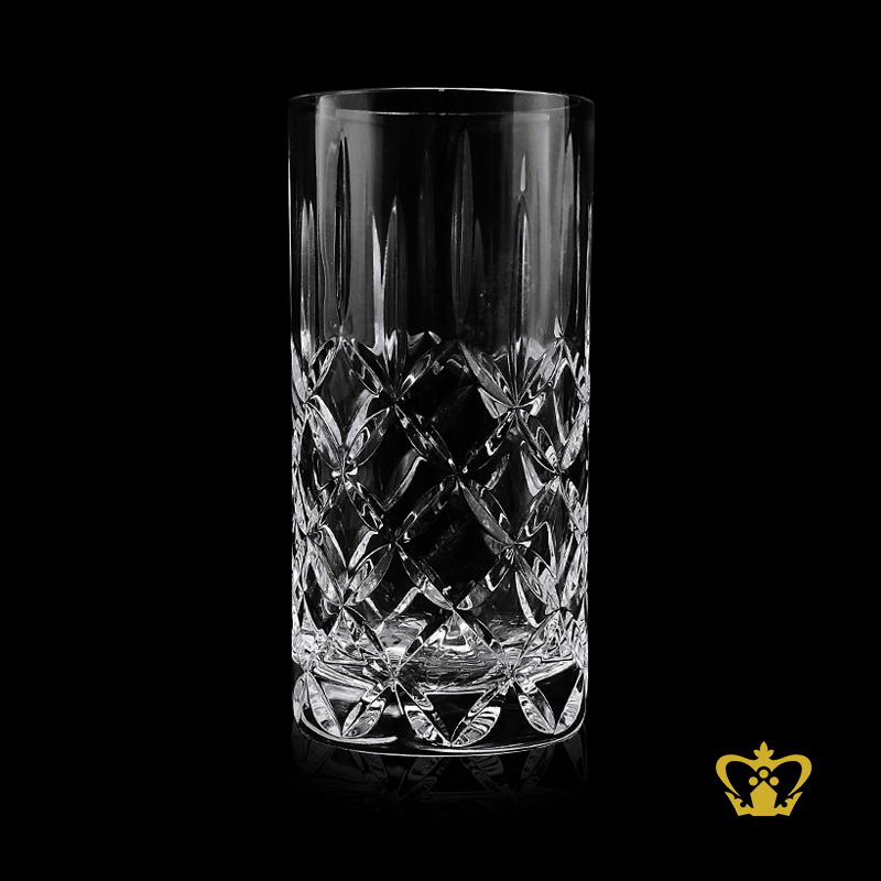 Unique handcrafted cross leaf cuts rising from bottom tall highball elegant crystal glass 13 oz
