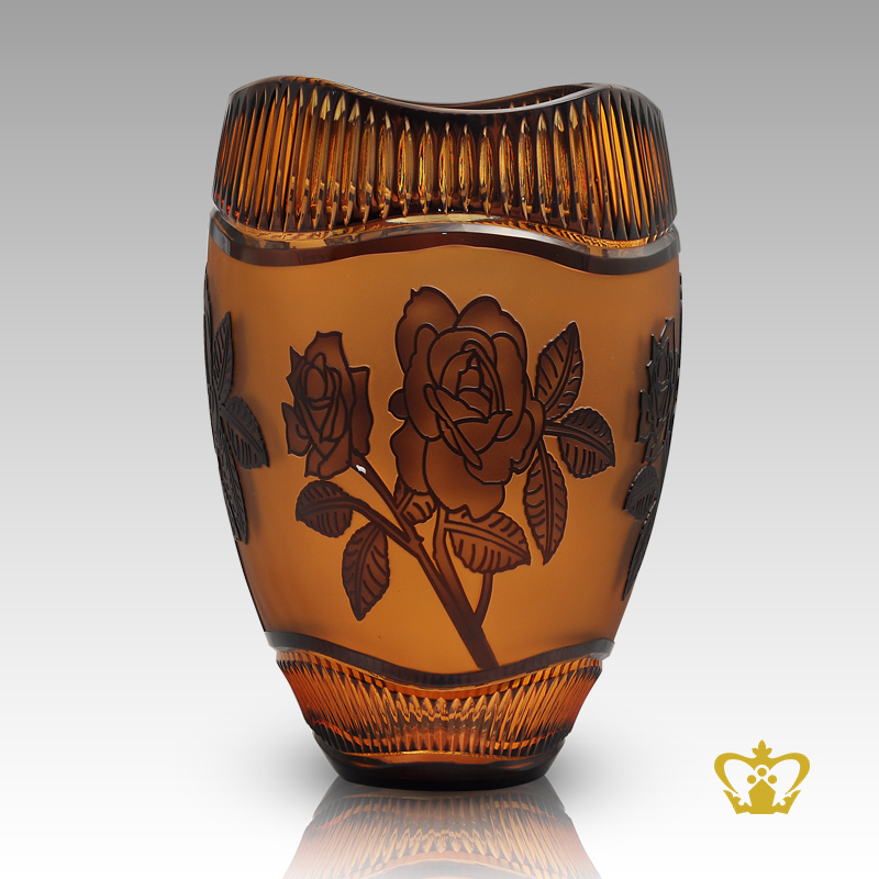 Alluring Amber sophisticated crystal vase adorned with precious elegant floral rose pattern