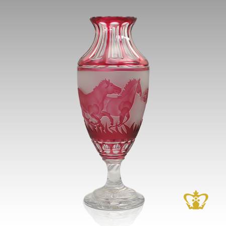 Timeless-enchanting-crystal-vase-with-running-horses-hand-carved-in-pink-hue-lovely-decorative-gift- Product Product