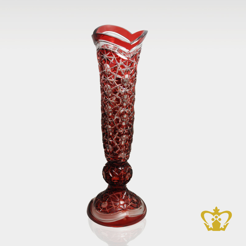 Charming-marvelous-red-long-footed-crystal-vase-adorned-with-handcrafted-unique-pattern Product Product