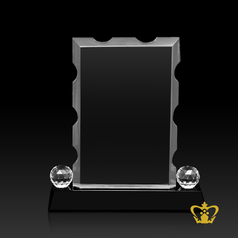 Crystal rectangular plaque side cut with diamond and stand on black base customized logo text
