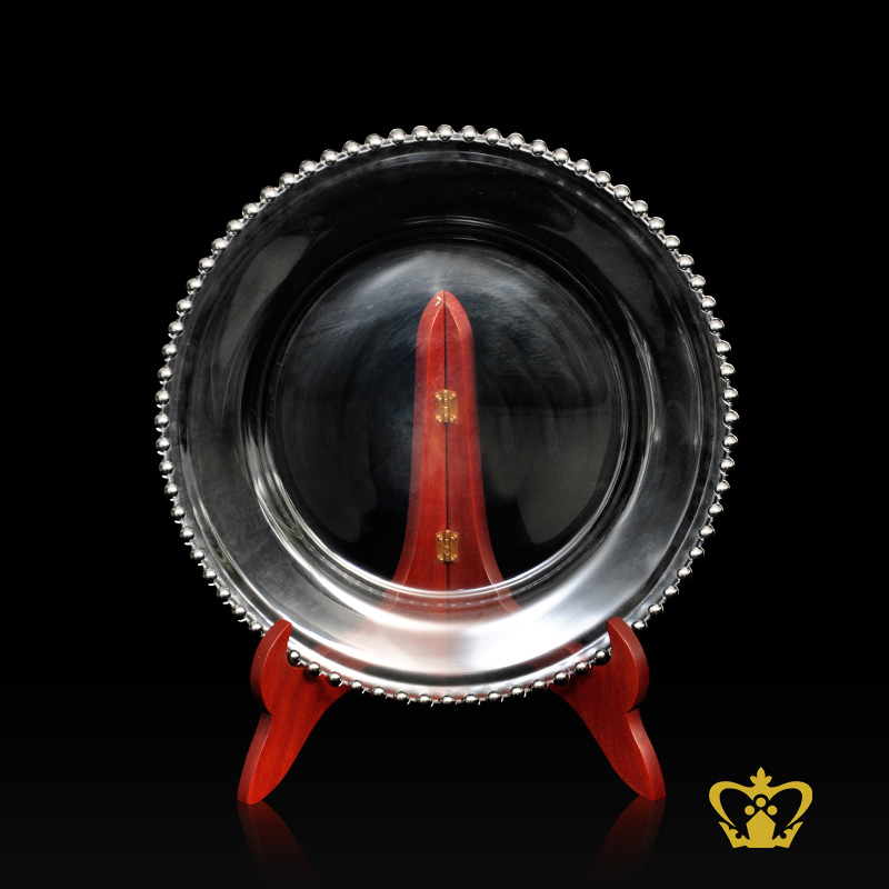 Decorative crystal center plate with metal silver ball edge customized text engraving logo