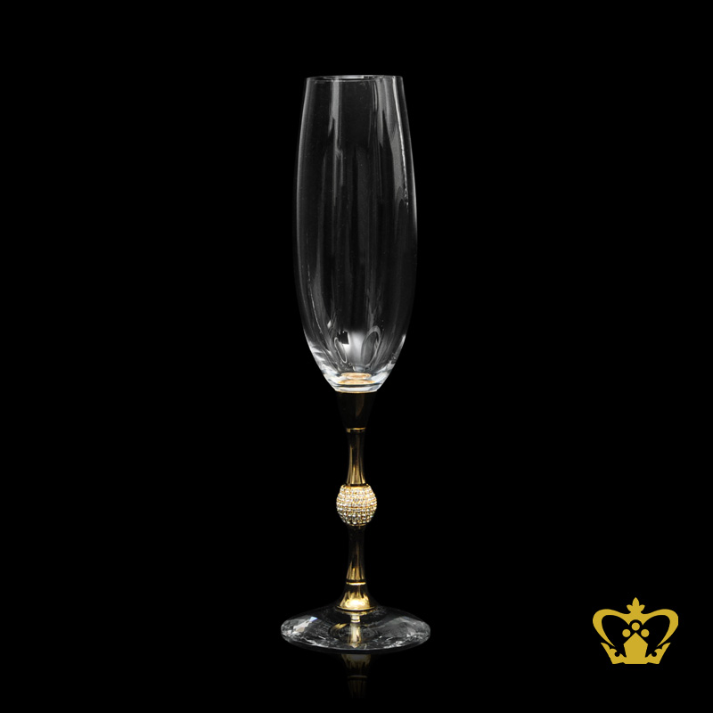 Crystal champagne flute glass unique shape design with golden metal stand swarovski stone on stem