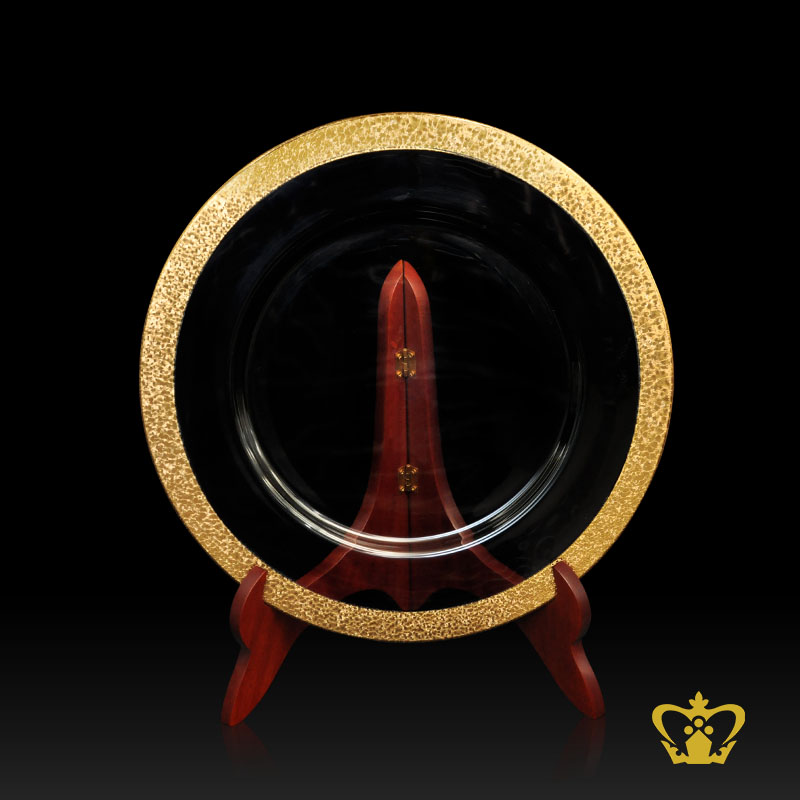 Handcrafted-decorative-crystal-center-plate-with-gold-pattern-edge-customized-text-engraving-logo Product Product
