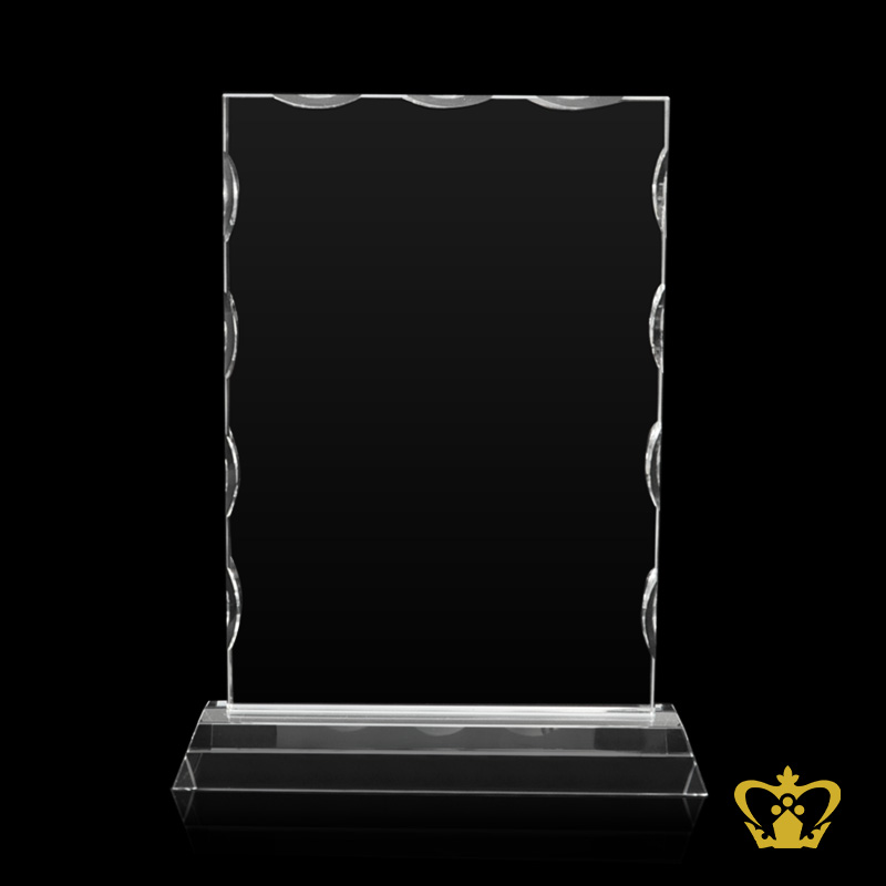 Rectangle vertical crystal plaque facet cuts on edges with clear base