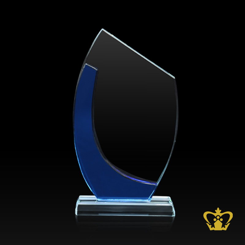 Shield-trophy-wave-cut-with-blue-crystal-and-clear-base-customized-logo-text Product Product Product